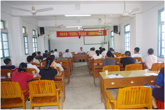 根據(jù)揭陽農(nóng)墾集團(tuán)公司開展“不忘初心、牢記使命”主題教育工作部署,8月8日下午,集團(tuán)公司(農(nóng)墾局)黨組書記、董事長朱勇到卅嶺農(nóng)場講“不忘初心、牢記使命”主題教育專題黨課。場機(jī)關(guān)全體干部、生產(chǎn)隊(duì)干部等30多人參加。黨課由農(nóng)場黨委書記、場長盧國勤主持。